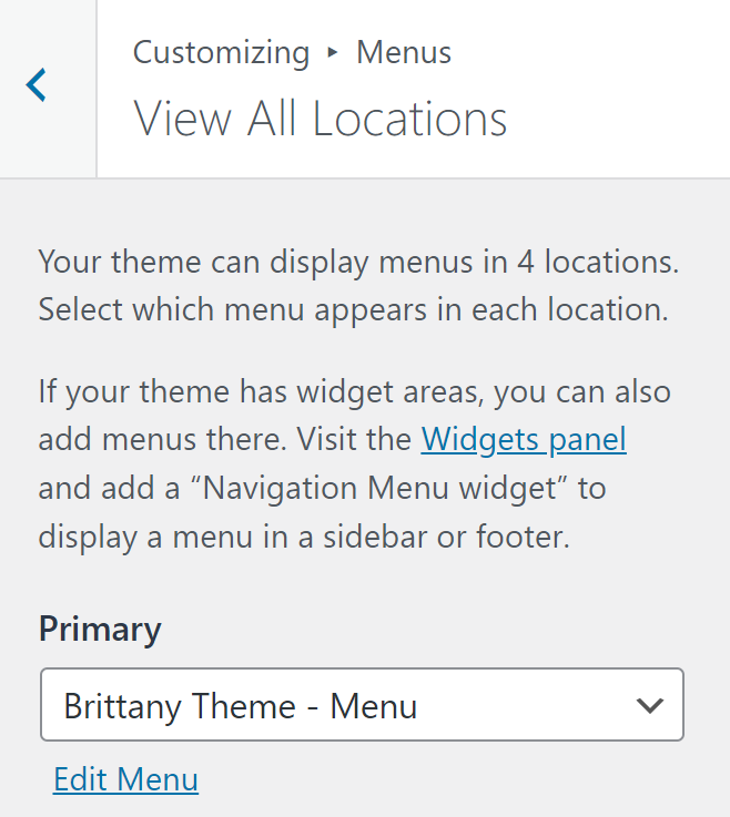 - The primary sidebar for this theme is called Brittany Theme Sidebar, as we walked through above.