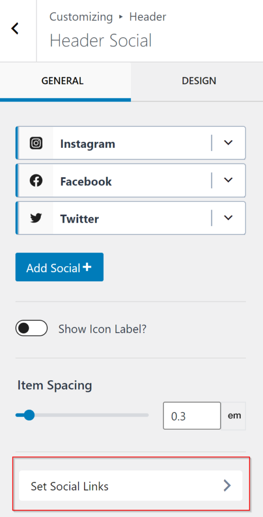 - Now we need to set the links to our profiles! Click on the Set Social Links button near the bottom in the sidebar.