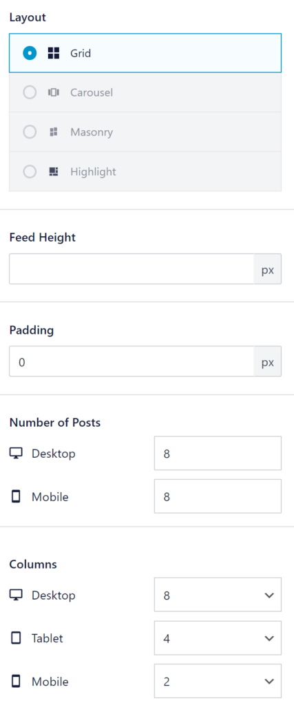 - Under Customize, go to Feed Layout, and configure the following settings: