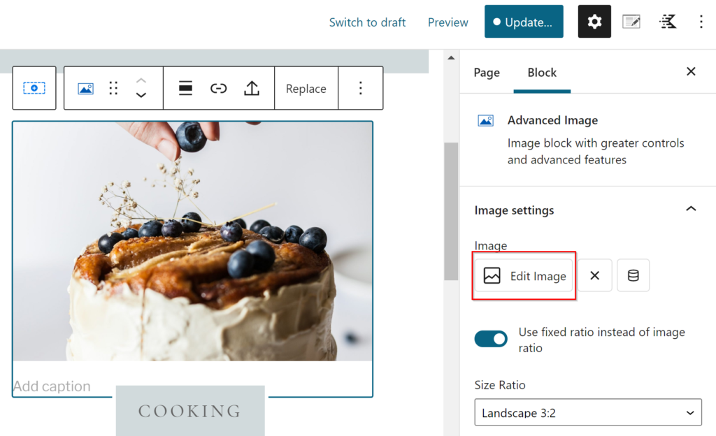 - Click on the photo you want to change. In the right sidebar, click on the Edit Image button.