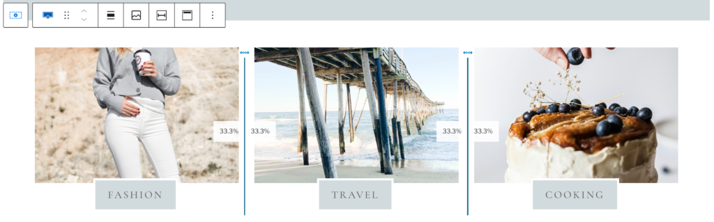 - Click in the white space between any two of the boxes. This will then pull up the row settings, displaying the 3-columns divided with blue lines as pictured below.