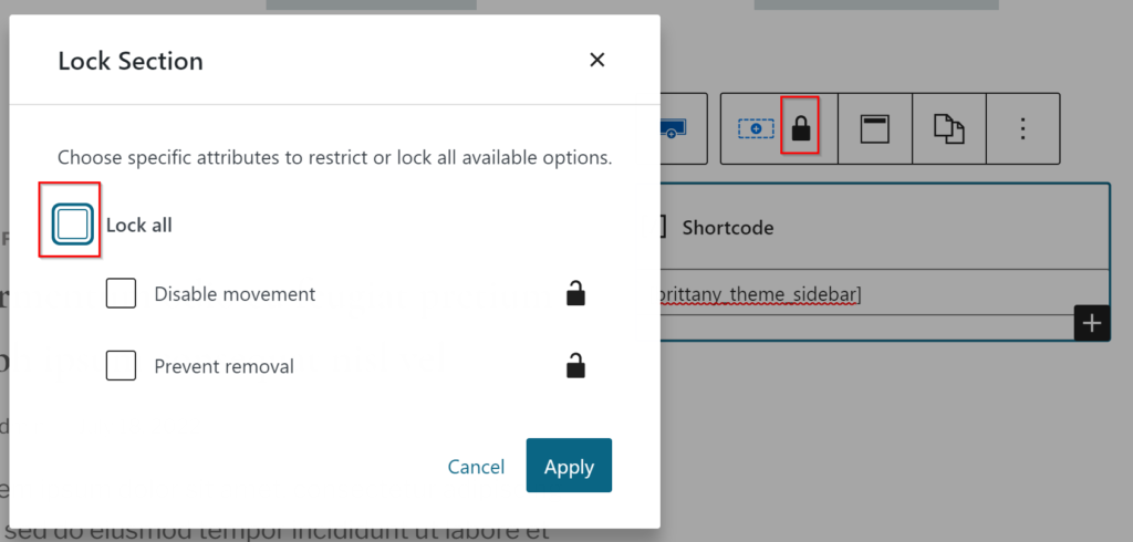 If instead you see a lock icon in your section, simply click on the icon and deselect “Lock all” and Apply changes. Now you can continue!