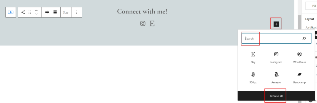 - Click on the social icon to edit/add the link. Then click the return arrow icon when you’re done to save the link.