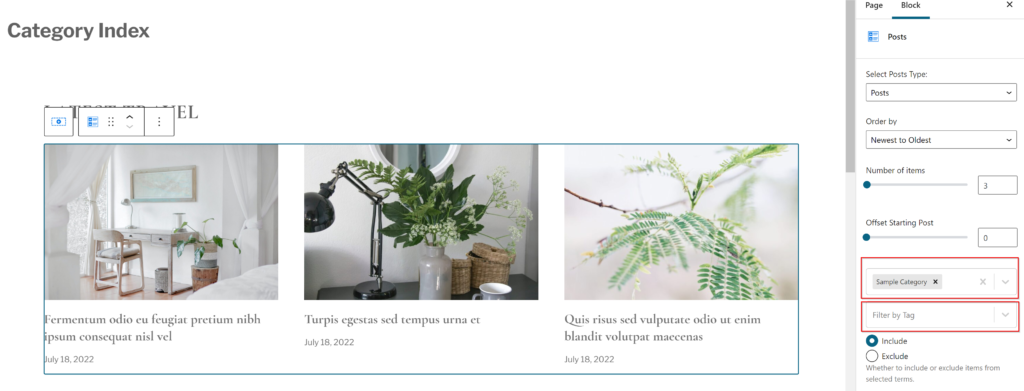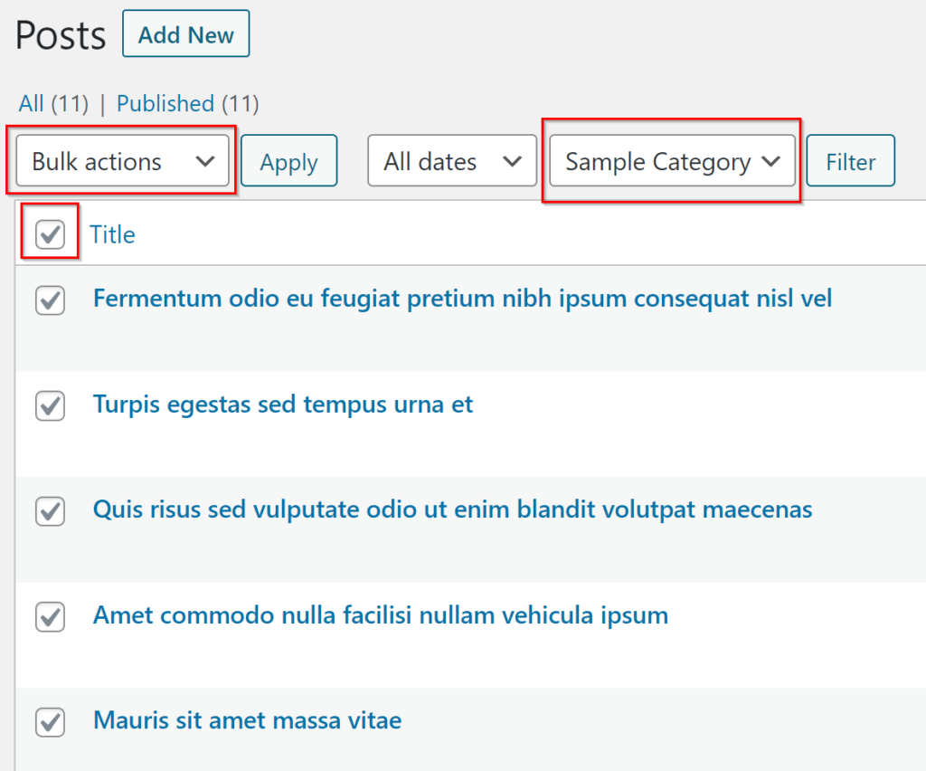 - TIP: All posts are categorized under Sample Category. Feel free to filter to that category for easier navigation if you already have existing posts.