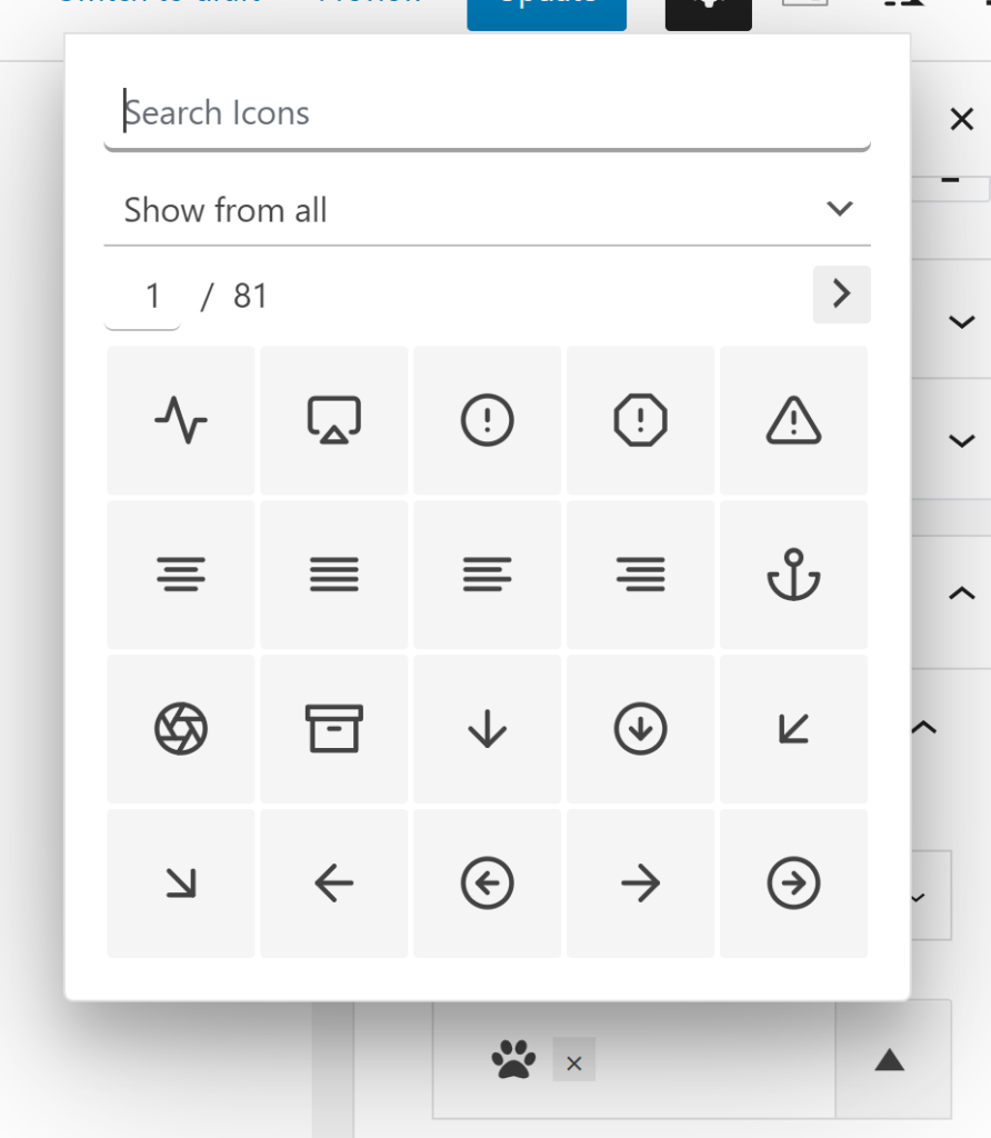 - Change the icon by clicking on the current one. A window will popup allowing you to scroll through the gallery, or search with generic terms!