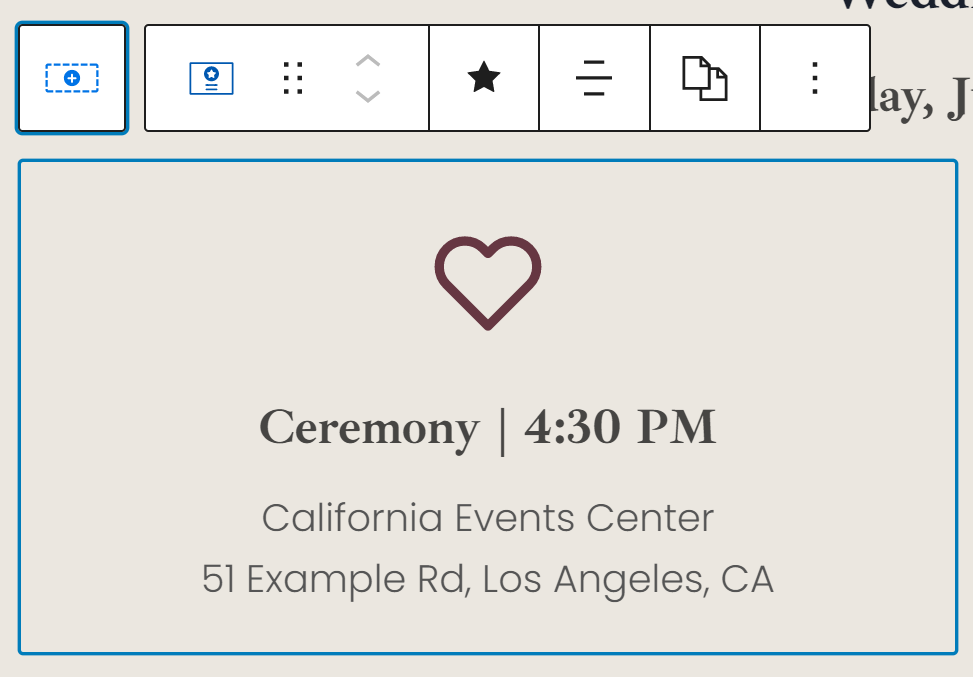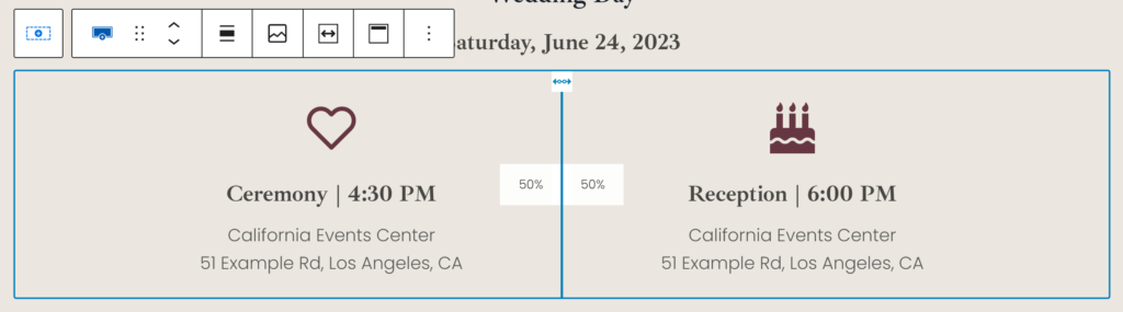 The beauty of our Cabernet Wedsite is that it is completely one page! So, this is the only page you have to update to customize. Keep in mind that you can customize this completely by removing anything you don’t need, and adding anything that you do!