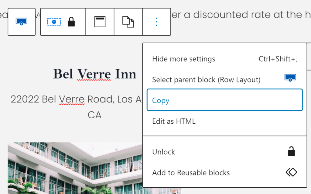 - Click the three dots icon to the right, then Copy.